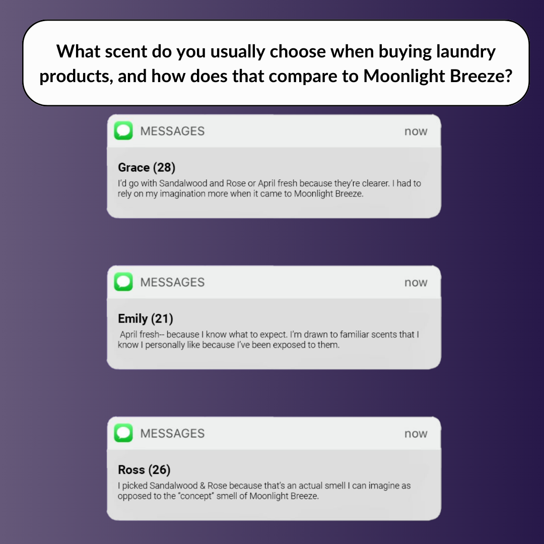 While many laundry scents have names that clearly communicate their fragrance, Moonlight Breeze remains elusive. Our research proved that because the name is unclear, people are less likely to try the product.