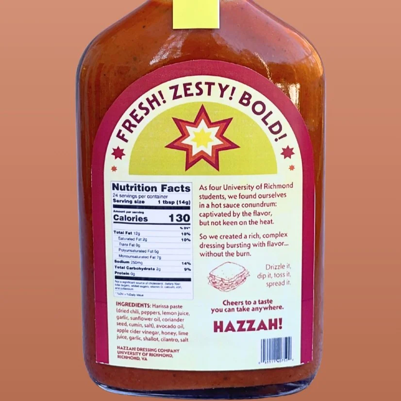 HAZZAH’s logo features warm colors to highlight the spicy (but not hot) qualities of our dressing.
